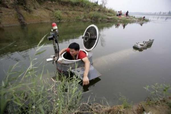 Ev yapımı denizaltı Çinli amatör mucit Tao Xiangli evyapımı denizaltısını Pekin'deki bir gölde başarıyla denedi. -