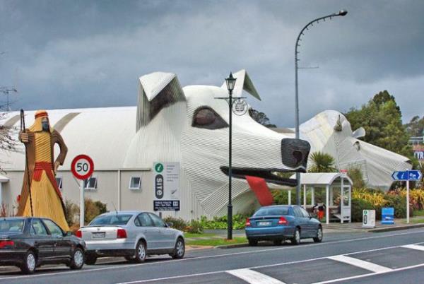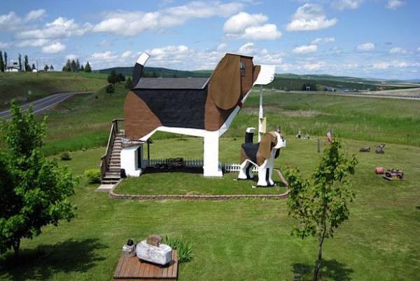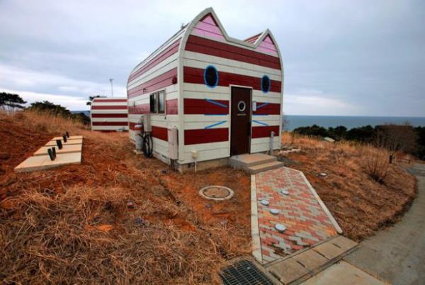 Birbirinden ilginç bu mimari yapıların hepsi bir hayvana benziyor. Balık, kedi, köpek gibi görünümlü evler görenleri şaşırtıyor.