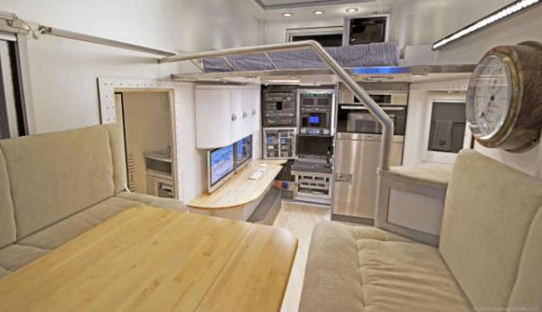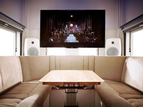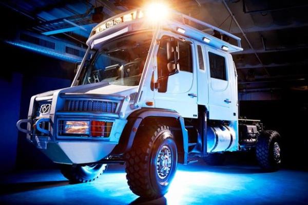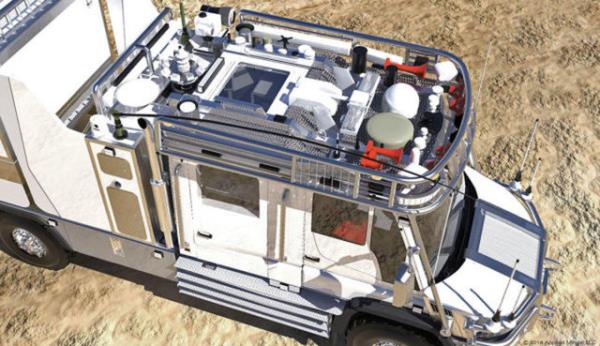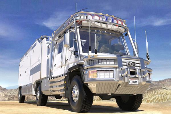 Bu yıl sonunda bitmesi beklenen tasarım harikası aracın içinde her türlü lüksü barındıran karavan kısmı, bilim kurgu filmlerini andıran sürücü kabini ve iletişim için her türlü destek bulunuyor.