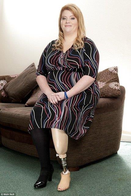 Genç kadının bir bacağı, bir gözü, saçının bir kısmı protez.