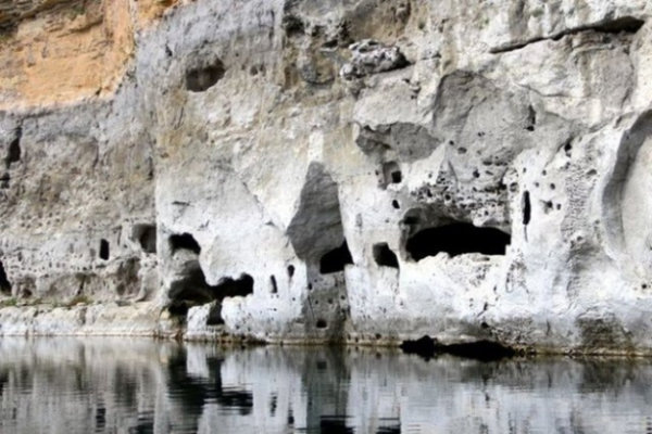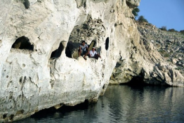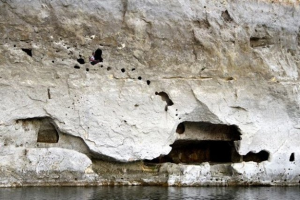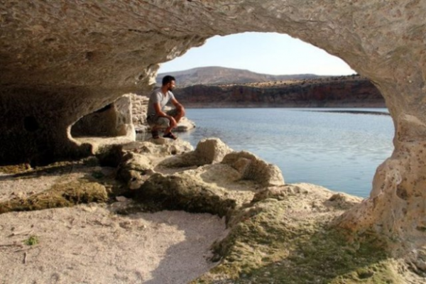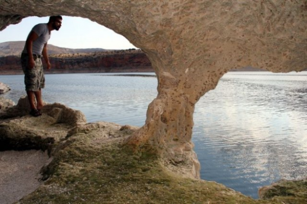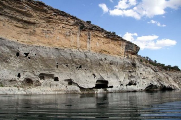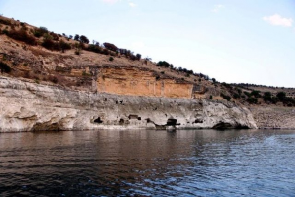 Elazığ'ın Ağın ilçesinde Keban Baraj Gölü altında kalan tarihi Hastek Kalesi Sığınakları'nın 2 katı, kuraklık sonucu göl sularının çekilmesiyle açığa çıktı