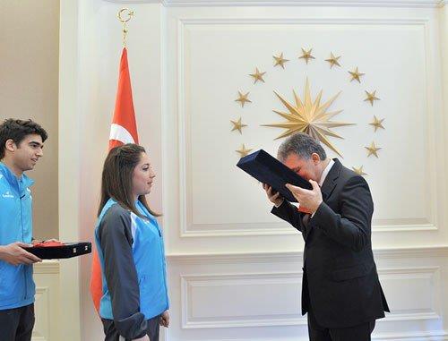648. Kırkpınar Yağlı Güreşleri'nin Başpehlivanlık müsabakasında Abdullah Gül'e ''Başağa'' sıfatıyla altın kemer takıldı. (Edirne-5 Temmuz 2009)