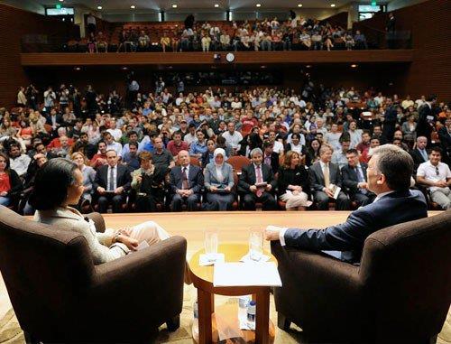 Öğretim yılı açılış konuşmasını yaptığı İstanbul Üniversitesi'nin tarihi binasından ayrılırken. (İstanbul-28 Eylül 2009)