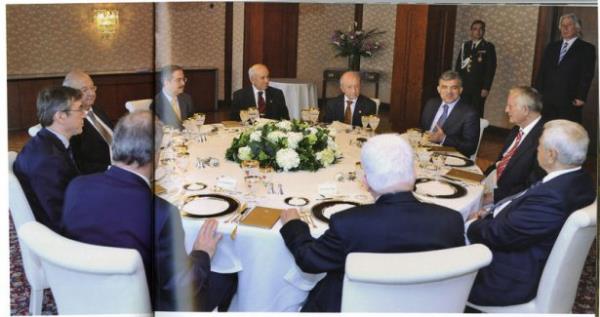 Abdullah Gül Çankaya Köşkü'nde Rahmi Koç, İlter Türkmen, Prof. Ali Doğramacı ve Memduh Karakullukçu'yu öğle yemeğinde misafir etti. (Ankara-5 Mayıs 2009)