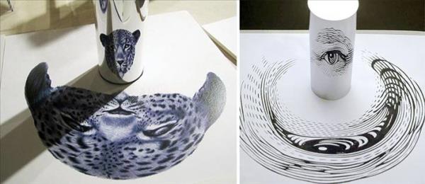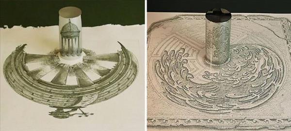 Bir yıl önce, Jonty Hurwitz tarafından yapılan yalnızca silindir şeklindeki bir ayna yansımasında görülebilen muhteşem görünümdeki anamorfik sanat eserleri tanıtıldı.