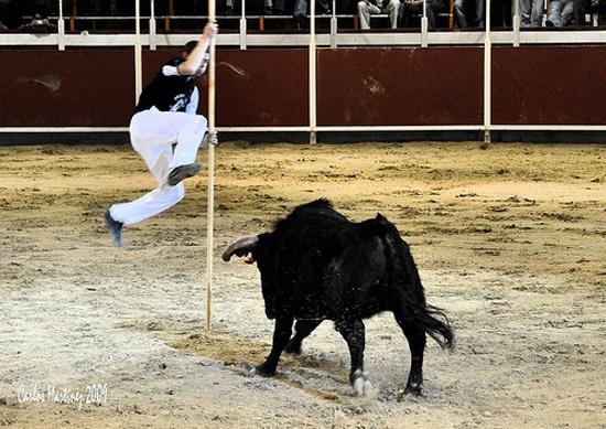 Atlayıcıları yakalayamadıkça daha da sinirlenen boğalarla mücadele eden bu kişilerin yaptığı bu işe "ölüme meydan okuma sanatı", bunu yapanlara da "Sanatçı" deniliyor.