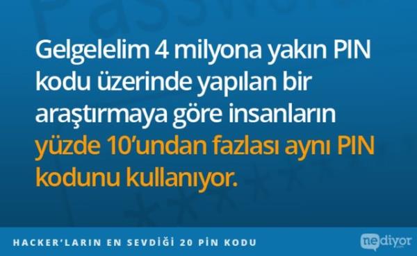 Yapılan bir araştırmaya göre insanların %10′undan fazlasının aynı PİN kodunu kullandığını gösteriyor. Aman dikkat!