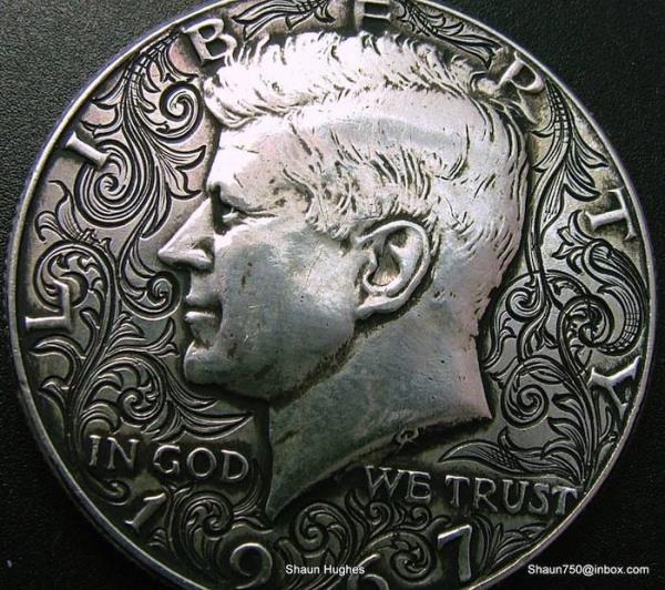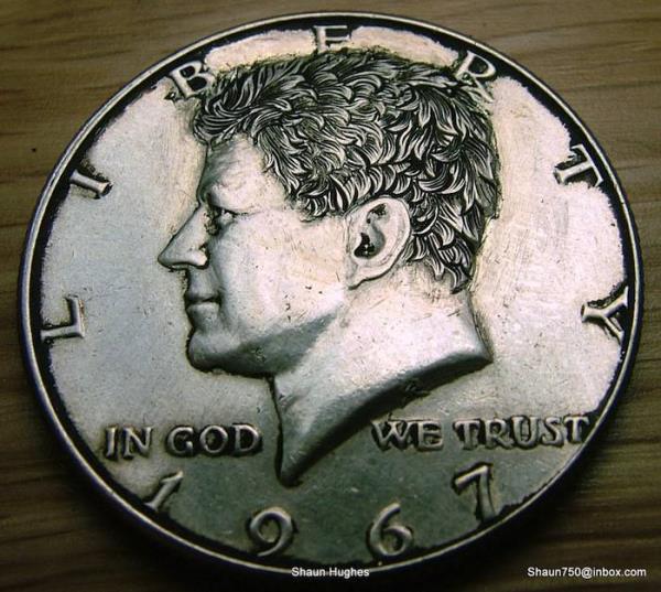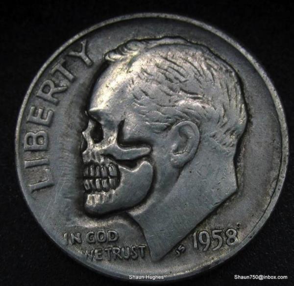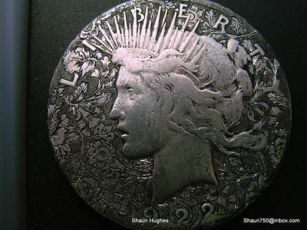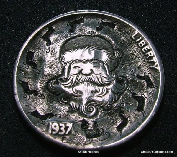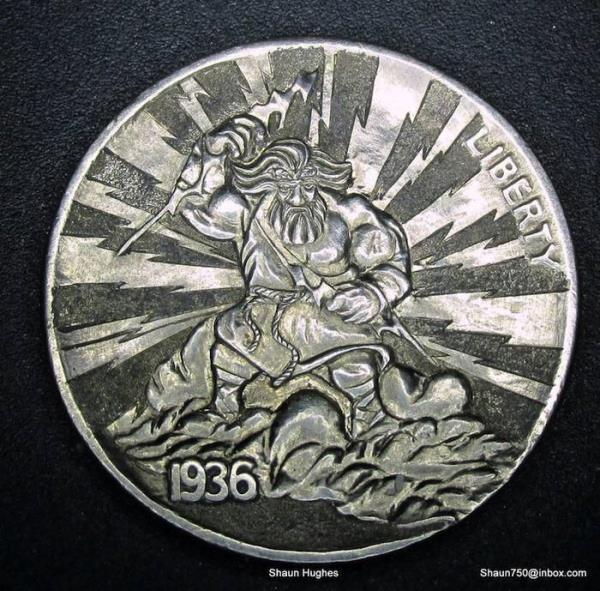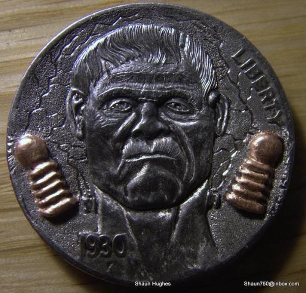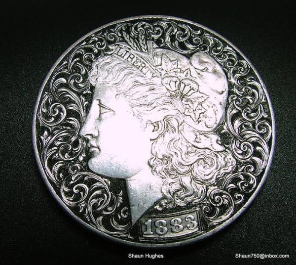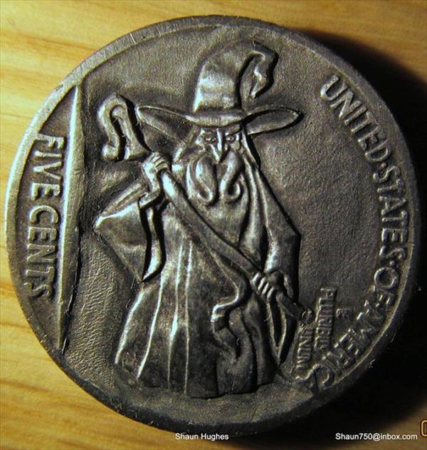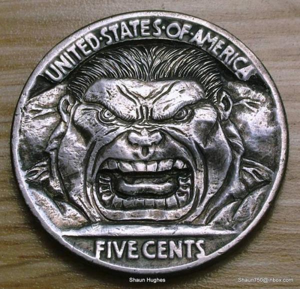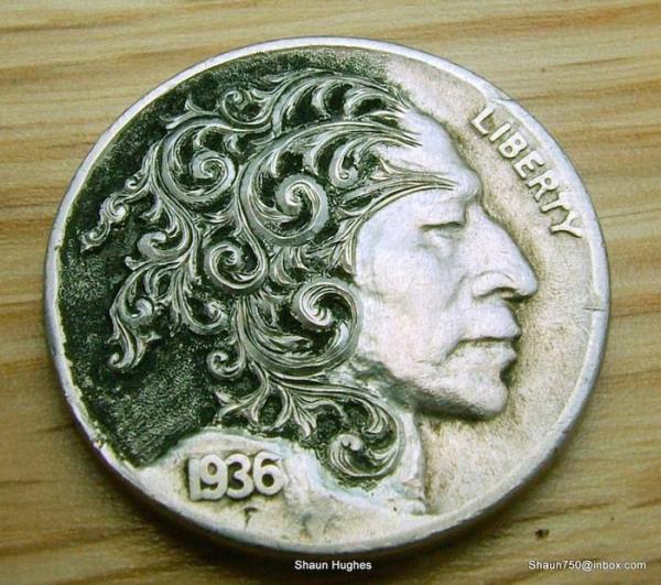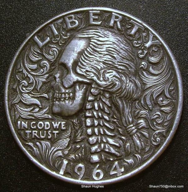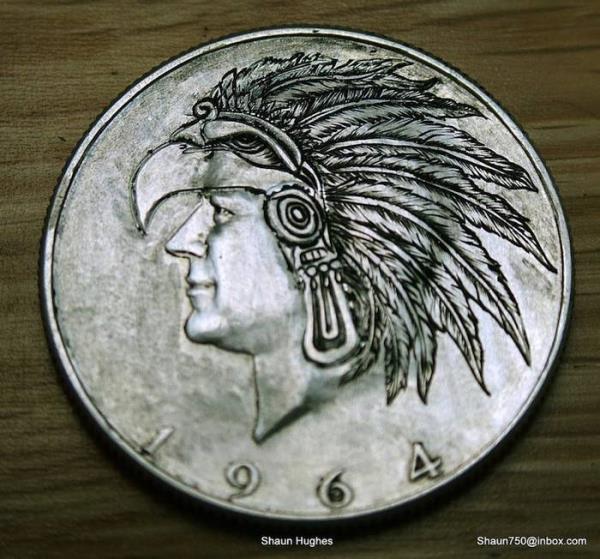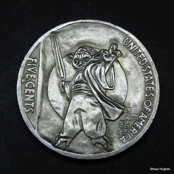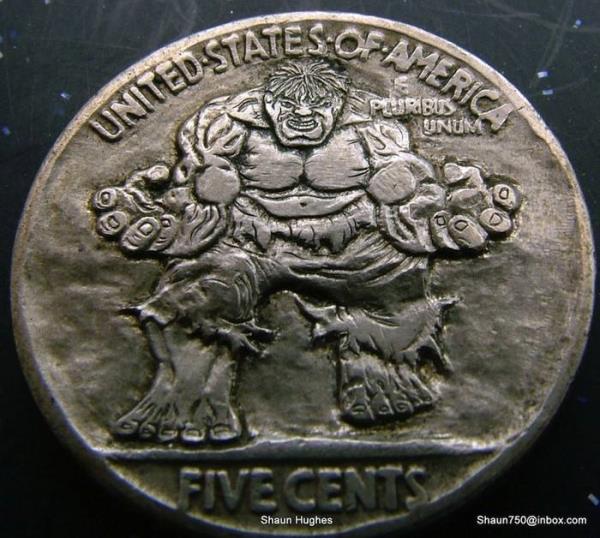 İngiltere'de yaşayan sanatçı Shaun Hughes madeni paraları kazıyarak kendi paralarını yaratıyor. Paraların üstüne çizgi romanlardan, Yunan mitolojisinden ve günlük hayattan esinlenerek bir çok şekil kazıyor. İşte sanatçının çalışmalarına örnekler.