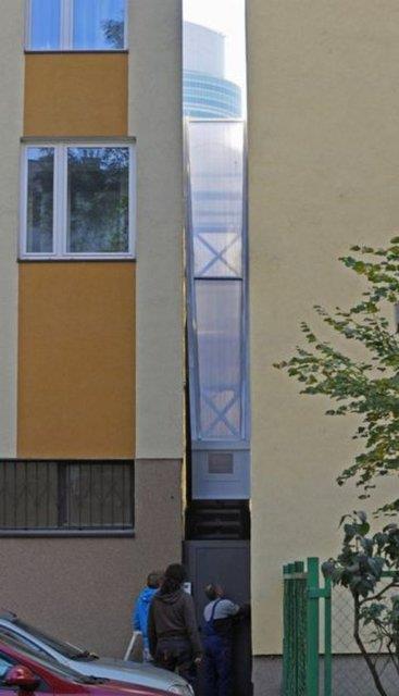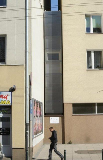Mimar Jacub Szczeny, tarafından iki apartman arasında 120 santimetrelik boşluğa inşa edilen bina kentlerde boşlukların kullanımına dikkat çekmek için tasarladı.