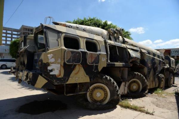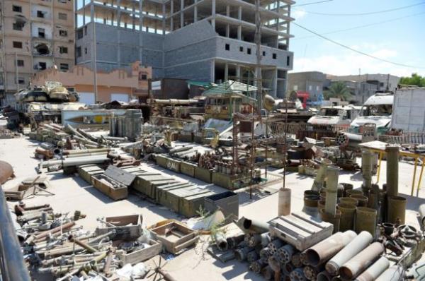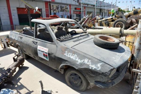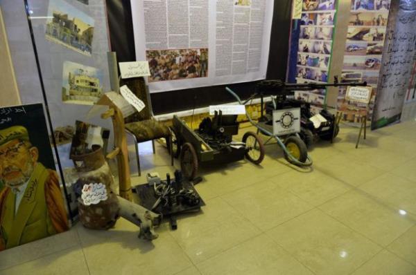Müzeye ait açık alanda, Kaddafi dönemine ait zırhlı araçlar ve ağır silahlar sergileniyor.