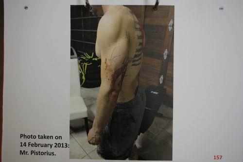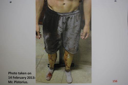 Kız arkadaşı Reeva Steenkamp'ı öldüren Oscar Pistorius, cinayeti işledikten sonra üzeri kan içinde görülüyor. Pistorius'un şortu neredeyse tamamen renk değiştirmiş. Oradan ayaklarına kadar kan akıyor.