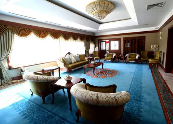 Bu bölümde ayak yıkamak için bir abdest lavabosuna yer verildi. Resmi kabul ve yemeklerin verileceği salonlarda özel üretim halılar kullanıldı. Üst kat ise kilimlerle donatıldı.