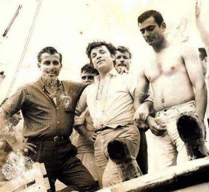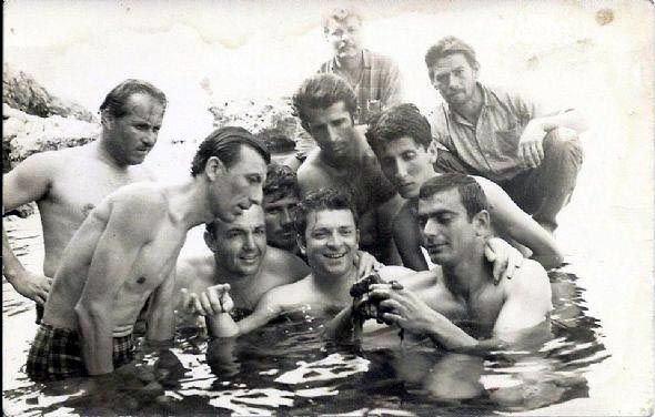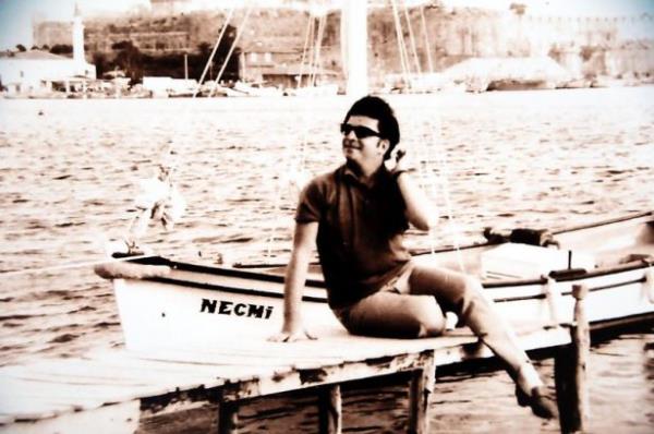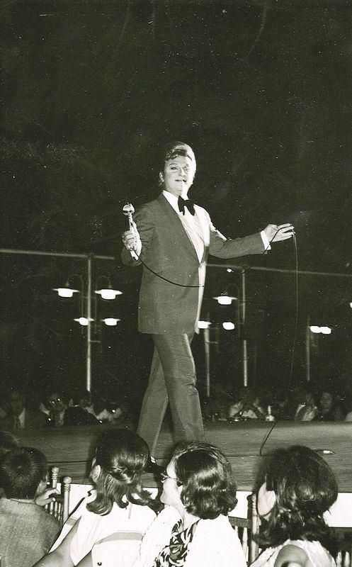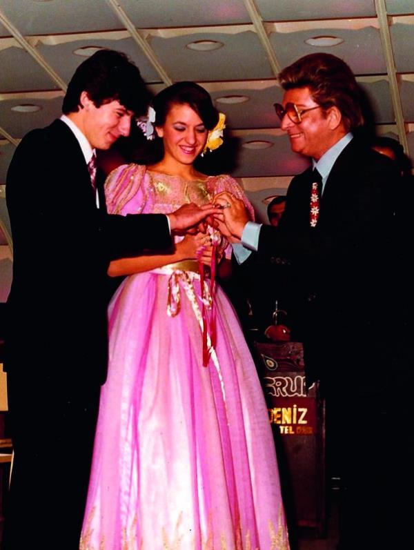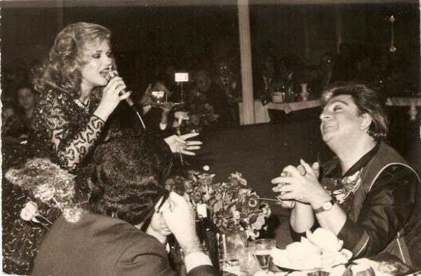 Fotoğrafta Şato Yazar Gazinosu sahibi Necdet Yazar'ın (sol 3), Zeki Müren'in (karşıda) programa başlaması nedeniyle verdiği davet görülüyor.