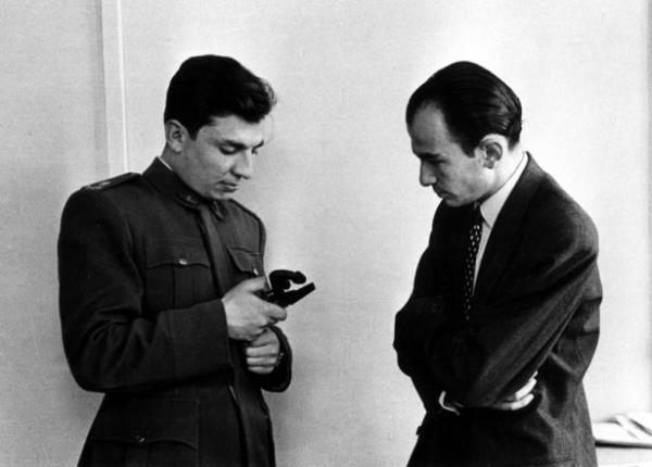 Fotoğrafta Sanatçı Zeki Müren'in (solda), Ankara Piyade Okulu'nda askerlik yaparken verdiği bir röportaj görülüyor.