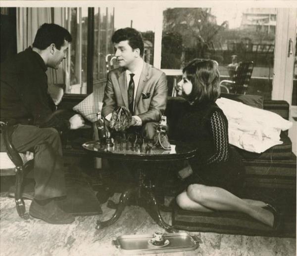 Fotoğrafta İtalyan sinema sanatçısı Sophia Loren (sol 2) adına verilen resepsiyonda (sağdan sola), tiyatro sanatçısı Ayla Algan, Ankara Senatörü Hıfzı Oğuz Bekata, Zeki Müren ve Ayten Gökçer görülüyor.