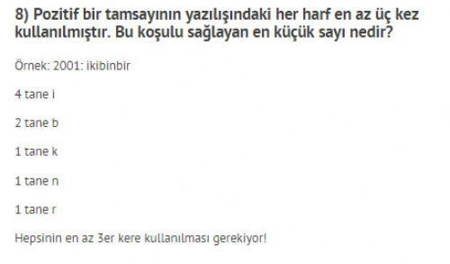 Türkye Zeka Vakfı bu yıl 19.'sunu düzenlediği Zeka Oyunları Yarşıması'nın sorularını açıkladı.