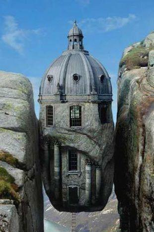 Görsel yanılsama üzerine çalışmalar yürüten İngiliz heykel ve enstalasyon sanatçısı Alex Chinneck imzalı binayı görenler, bina havadaymış yanılsamasına kapılıyor.