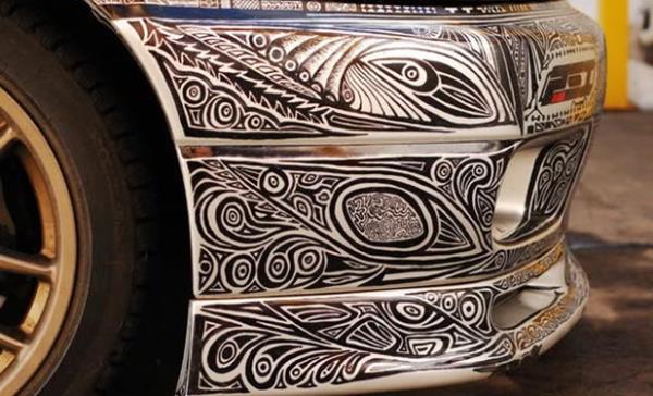 Kelton'un eşi Allison, kocasının aracına farklı bir görünüm kazandırmak için önce küçük çizimlerle tampon bölgesinde çalışmalar yapmaya başladı