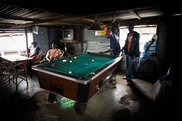 Migingo adasında yaşam teneke kaplı barınaklarda geçiyor.