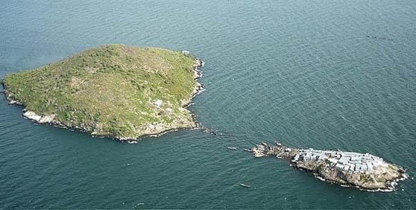 İç içe barakaların kapattığı adanın sıradışı görüntüsü, hiç kimsenin yaşamadığı komşu Piramit Adası'ndan çekildi.