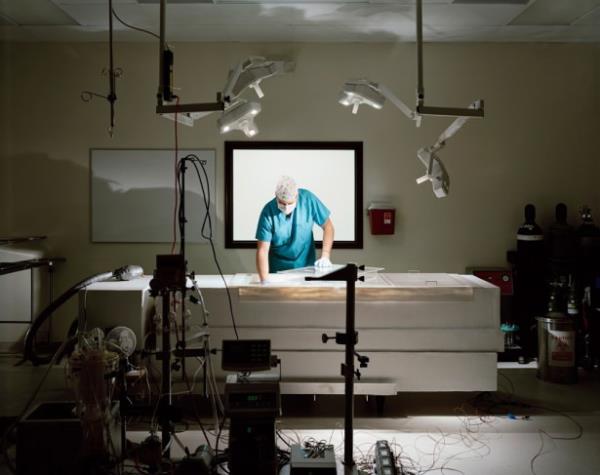 Ölü beden önce buz kalıplarıyla soğutuluyor ve göğüs kafesi açılarak vücuttaki kan damarlardan çekiliyor.