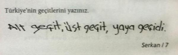 Sınavlar birçok çocuğun korkulu rüyasıdır. Ancak sınav günü gelip çattığında birbirinden ilginç soru ve yanıtlarla karşılaşmak da olası