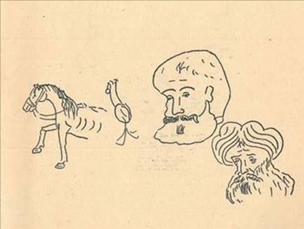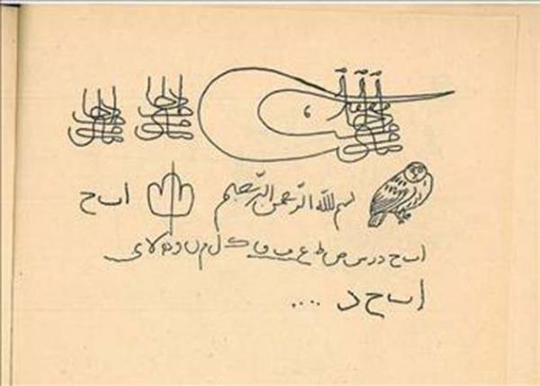 12 yaşında tahta çıkıp 21 yaşında İstanbul'u fethedip yeni bir çağ açan Fatih Sultan Mehmet'in çocukken tuttuğu not defterinde çiçek motifi , at başları , baykuş , leylek , kartal çizimleri , kanat şeklinde desenler , Fatih’in hocalarının ve o dönem etrafında gördüğü kimselerin karikatürleri , sarıklı yüz çizimleri , eski Türkçe alfabe gibi şekiller var.