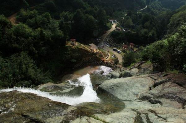 Rize'nin Çayeli ilçesinde bulunan Ağaran şelalesinin üzerindeki doğal havuzlarda yüzüyorlar.