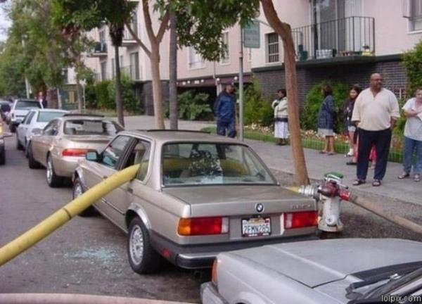 Amerika'nın neresinde çekildiği belli olmayan fotoğraflarda yangın musluğunun önüne park etmiş bir araç görülüyor.