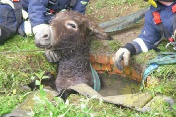 İsviçre'nin kuzeyinde yaşayan bir adam, Pratteln'deki yetkilileri arayarak bir eşeğin kuyuya düştüğünü haber verdi. Urs Meyer adlı İsviçreli köpeğini gezdirmeye çıktığı sırada eşeğin kuyudan fırlamış haldeki başını fark etti. Hayvanı kurtarmaya çalışan itfaiyeciler, hayvanın iyi durumda olduğunu gördüler. Eşeği kurtarmak için yaklaşık 1 saat uğraş verildi. -