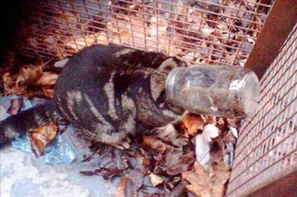 İngiltere'nin Suffolk bölgesindeki Bury St. Edmunds'da yaşayan Casper adlı kedinin kafası, lastiğin içine sıkıştı.