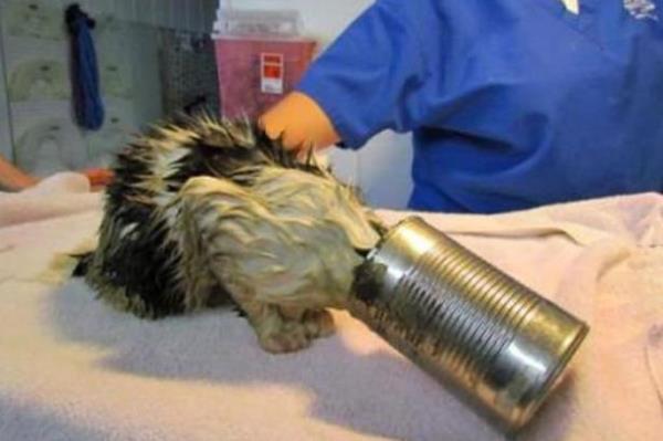 Bu küçük tatlı kirpinin kafası, içecek taşımak için kullanılan bir plastiğe takıldı.