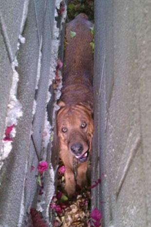 Keano adlı 6 aylık bir haski cinsi köpek, kafasını tuğladan bir duvara sıkıştırdı. Hampshire'da yaşanan olayda köpek yara almadan kurtarıldı.
