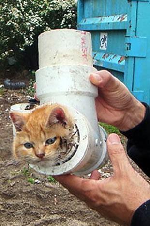 Kendini kedi zanneden Moses Chan adlı köpek, bir evin giriş kapısındaki kedi girişine sıkıştı. Welwyn Garden şehrinde yaşanan olayda itfaiye görevlileri, köpeği zorlukla kurtardı.