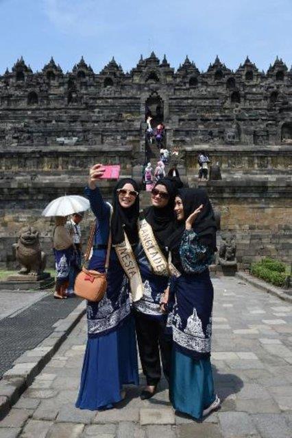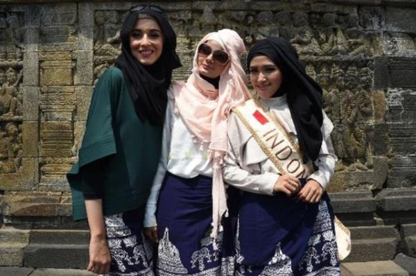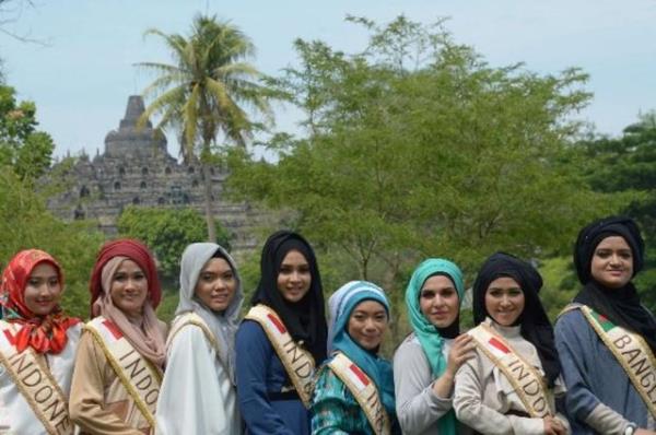 İlk kez 2011 yılında düzenlenen Miss World Muslimah'ın (Müslüman Kadınlar Dünya Güzellik Yarışması) bu yılki finalistleri, Endonezya'nın en eski Budist tapınaklarından biri olan Borobudur'da basına poz verdi.