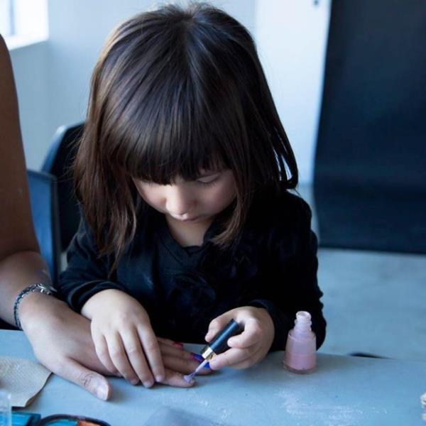 Küçük kızlar, ellerinde makyaj malzemeleriyle annelerini gönüllerince süsledi.