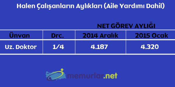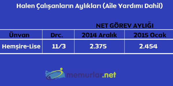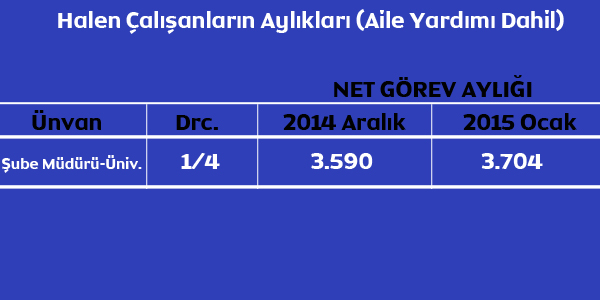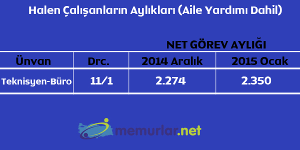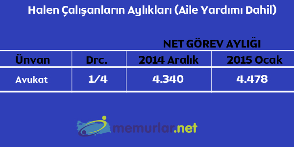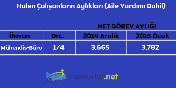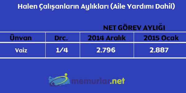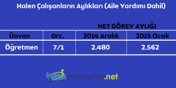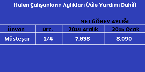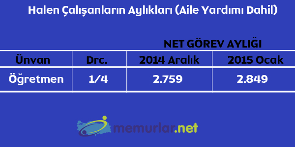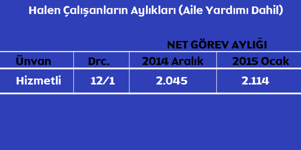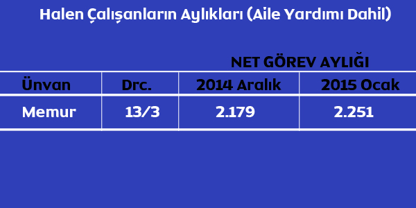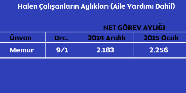 - Memurların mevcut maaşı ile 2015 Ocak'ta alacakları maaşları şöyle: