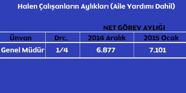 Aile ve çocuk yardımı almak kaydıyla müsteşar maaşı 7 bin 838 liradan 8 bin 90 liraya, genel müdür maaşı ise 6 bin 877 liradan 7 bin 101 liraya çıktı.