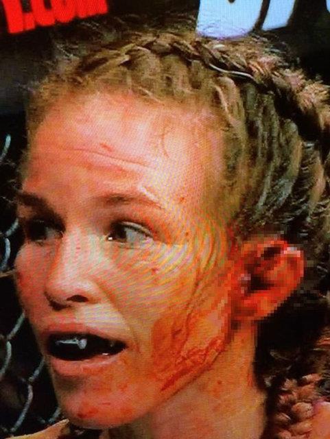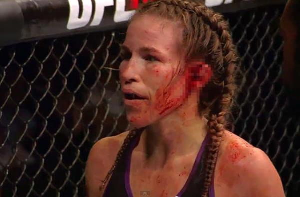 Leslie Smith'in maç sırasında aldığı darbe sonrası neredeyse kulağı kopuyordu.