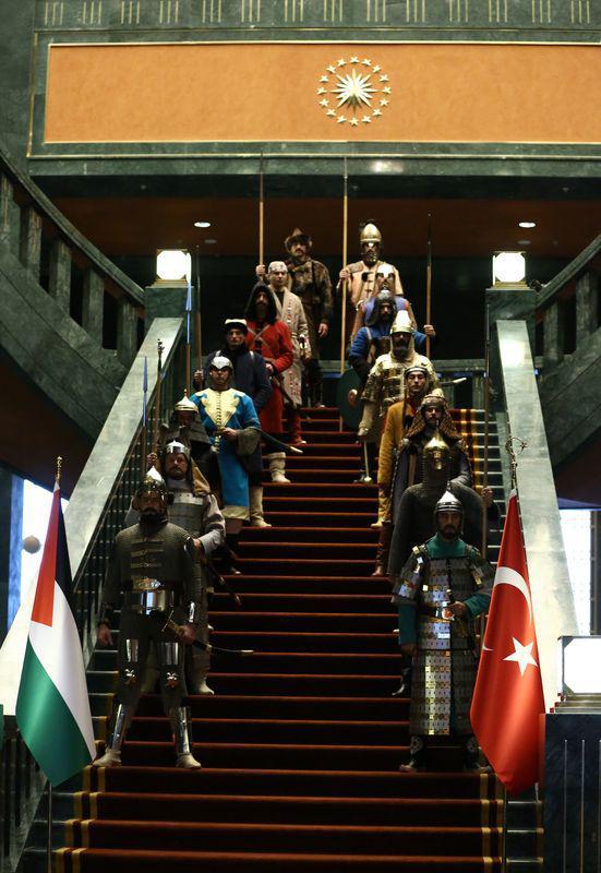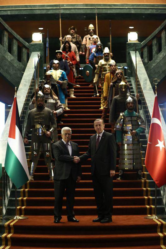Filistin Devlet Başkanı Abbas, Cumhurbaşkanı Recep Tayyip Erdoğan tarafından Cumhurbaşkanlığı Sarayı'nda resmi törenle karşılandı.