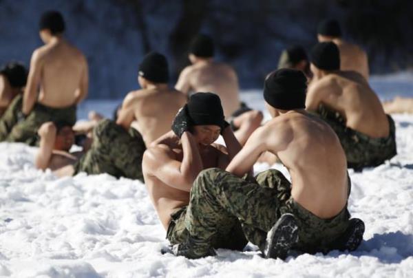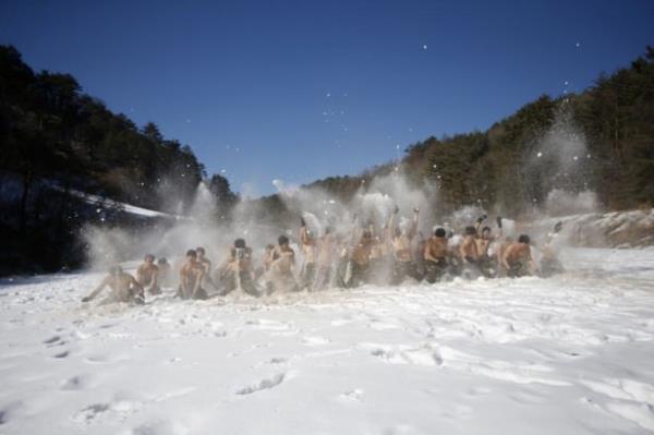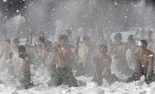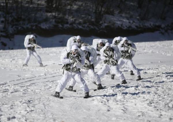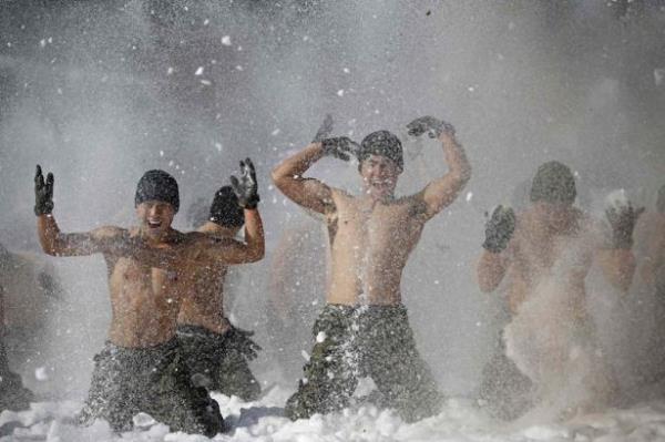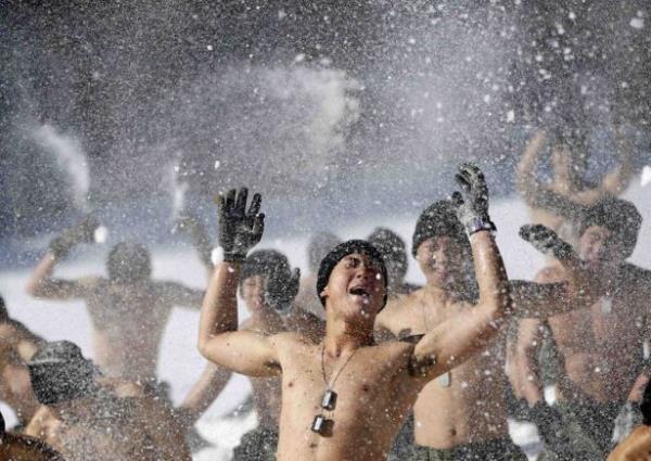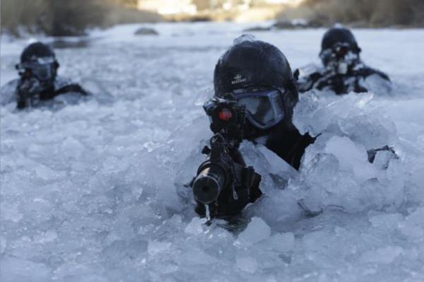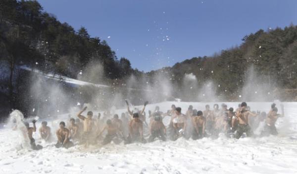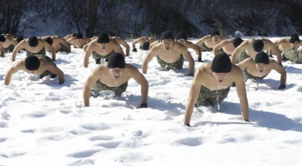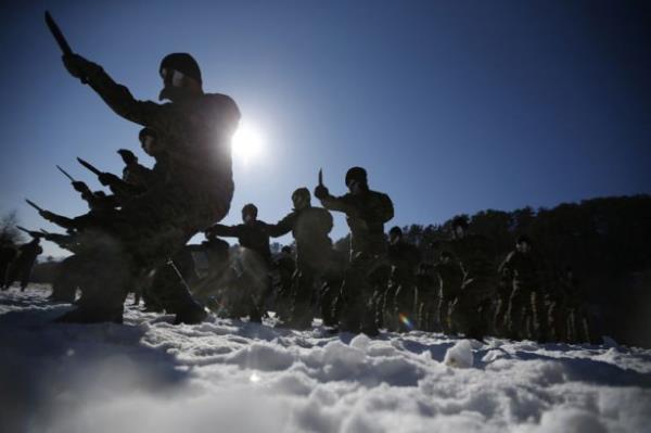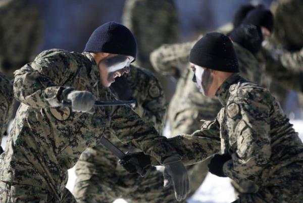 Güney Kore ordusunun özel kuvvetleri kış tatbikatı yaptı. Tatbikat sırasında askerler buz tutmuş suya da girdi.