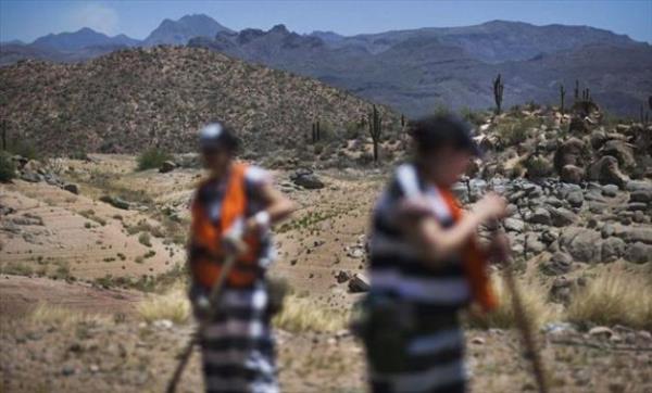 ABD’nin Arizona eyaletinde bulunan Estrella Hapishanesi’nin kadın mahkumları ülkenin tek prangalı grubunu oluşturuyor.