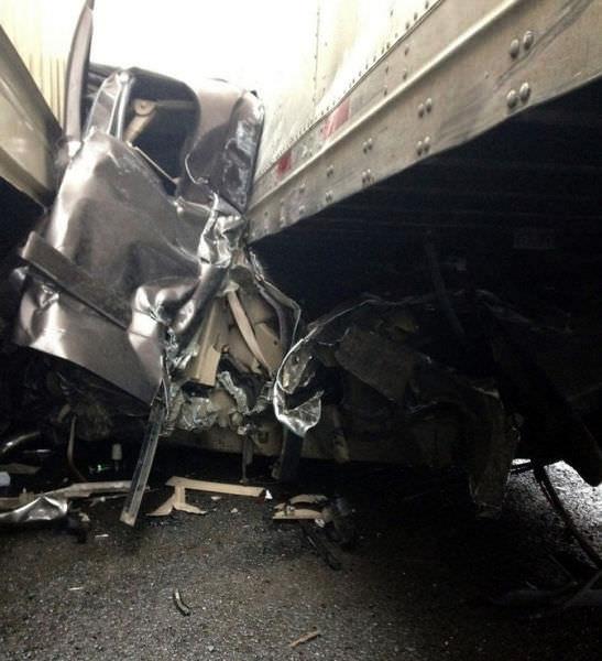 Şans eseri yara dahi almadan kurtulan pickup sürücüsü Whitby, "Kurtulduğuma çok şükrettim. Bir anda iki tırın arasında kaldım. Direksiyonu kırıp kurtulmak gibi bir şansım da kalmamıştı. Çok korktum. Kazadan sonra sıkıştığım yerden yardım için bağırdım" dedi.