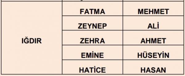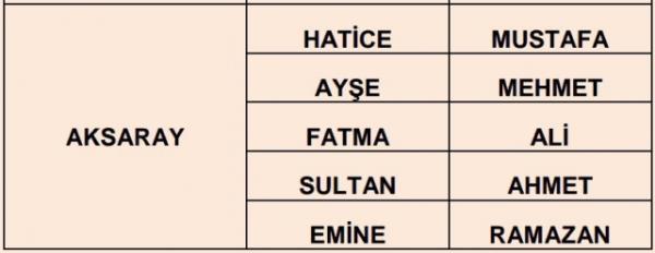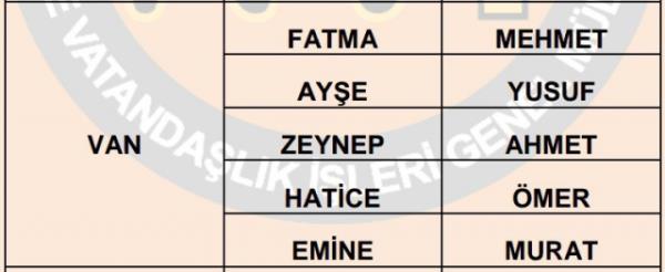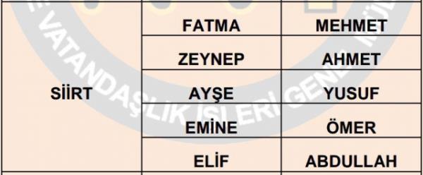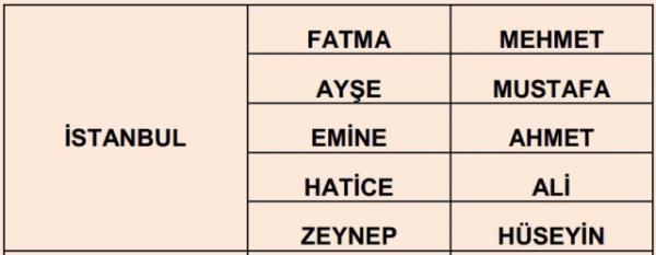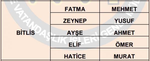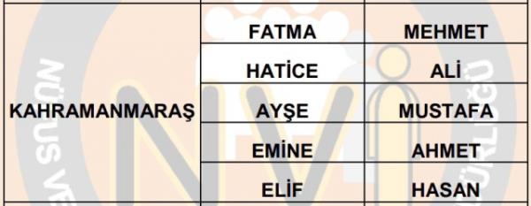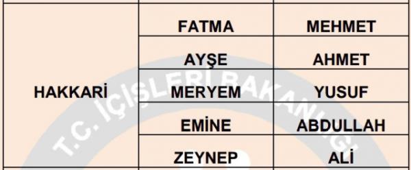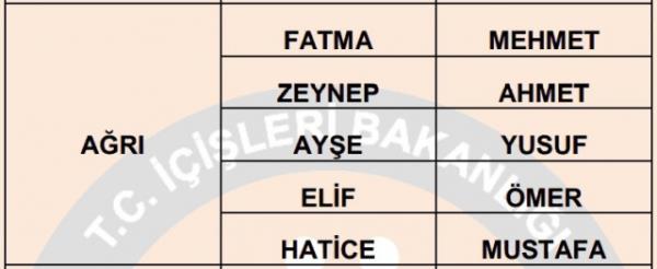 Nüfus İstatistikleri Daire Başkanlığı 81 ilde ailelerin çocuklarına verdiği ilk 5 isimi açıkladı. İşte illere göre kız ve erkek çocuklarına verilen isimler...