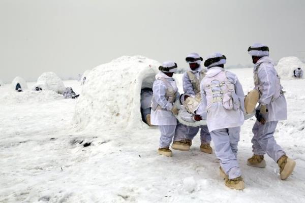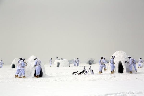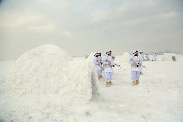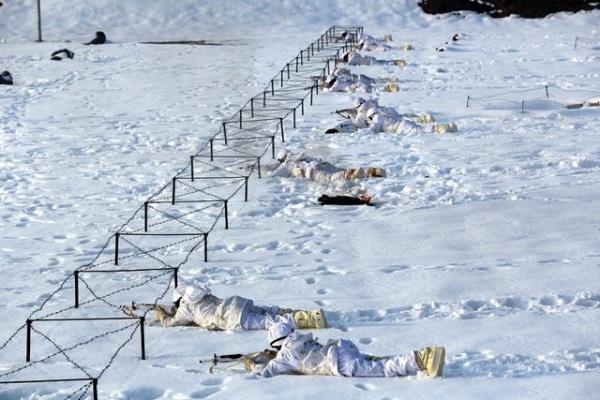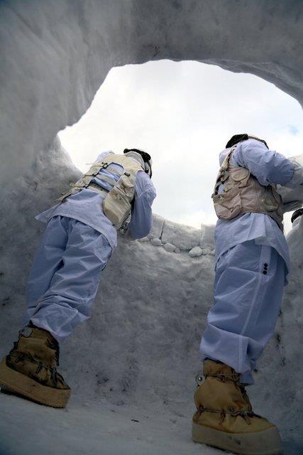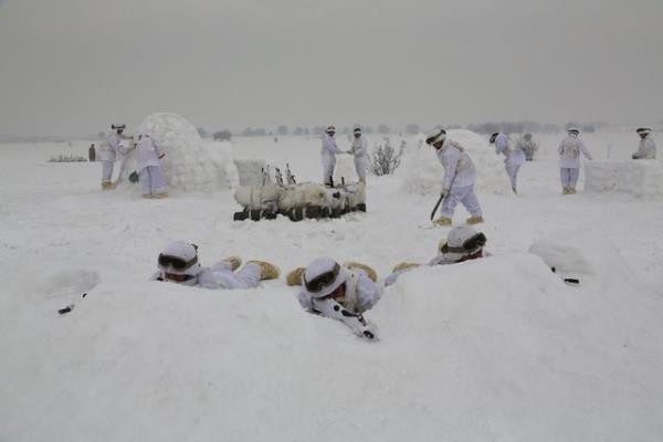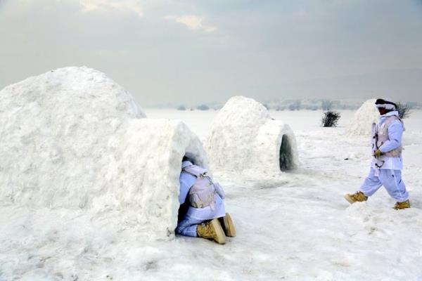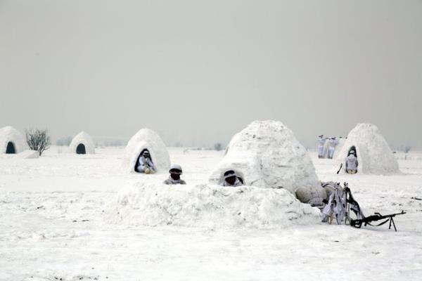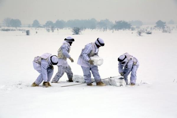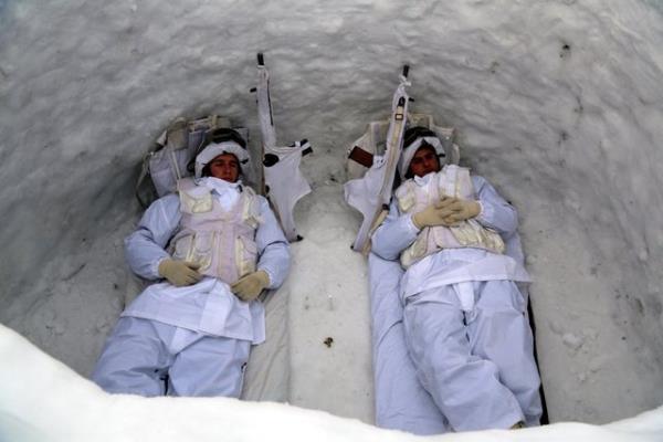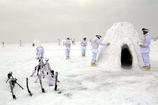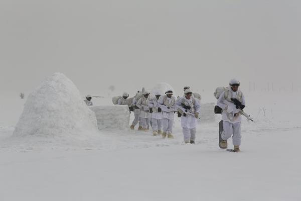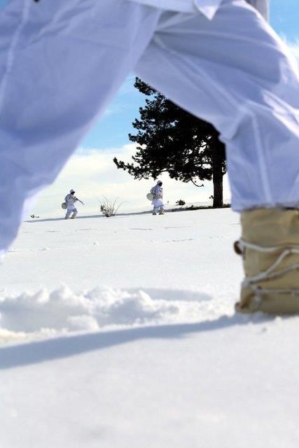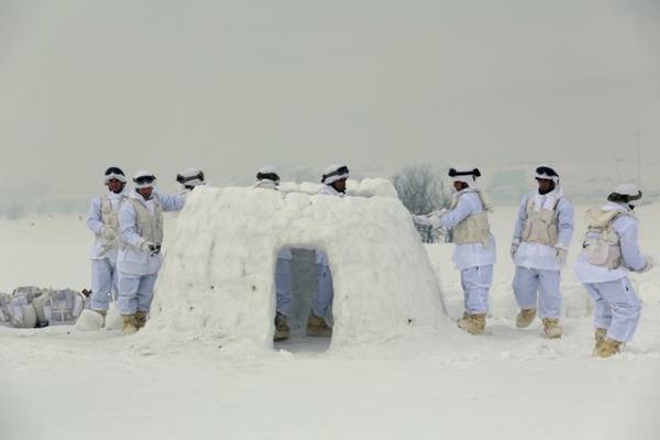 Köroğlu Dağları'nda 50 santimetreyi bulan kar ve sıfırın altında 10 derecede iglo yapan komandolar, senaryo gereği sızma parkurunda ağır makineli tüfek ateşi altında başarıyla ilerledi.