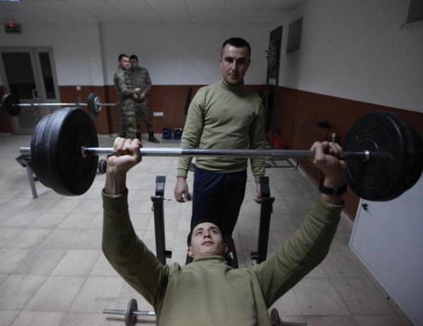 Atatürk’ün “Sağlam kafa sağlam vücutta bulunur” sözünü düstur edinen askerlerin yaşamında sporun çok önemli bir yeri var. Güne sabah sporuyla başlayan Mehmetçik, görevlerinden kalan zamanlarını da taburun spor salonunda değerlendiriyor.
