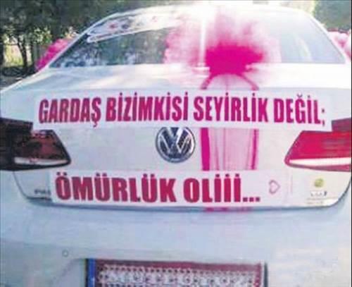 Minibüs yazılarına alışkınız. Peki ya gelin arabalarındaki yazılara?