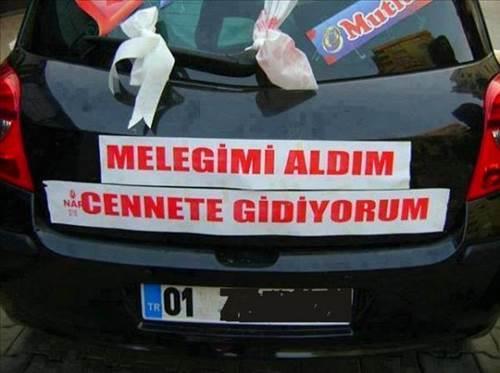 Kamyon ve minibüslere yazılan yazılara alışkınız. Peki ya gelin arabalarındaki yazılara?