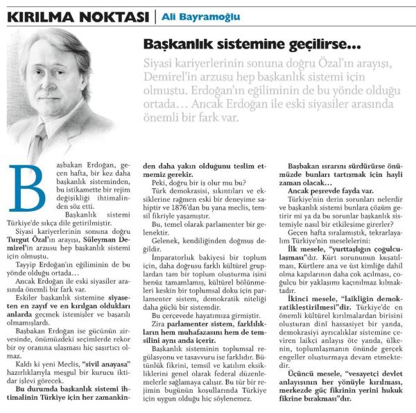 Menderes hükümetlerinden bu yana Türk siyasi hayatının en büyük hayallerinden biri olan Başkanlık sistemi yeniden Türkiye gündeminde. 7 Haziran seçimlerinde hem Türkiye'yi yönetecek milletvekillerini hem de Başkanlık sistemine zemin hazırlayacak meclis aritmetiği için sandık başına gideceğiz.