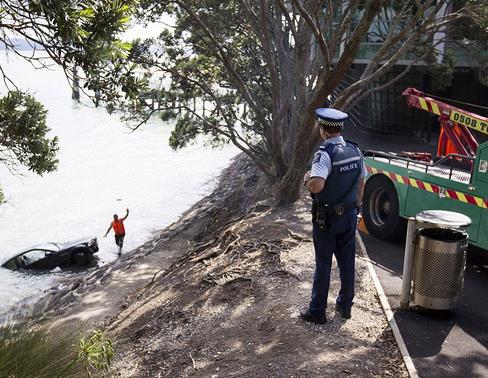 Yeni Zelanda'daki Waitemata Limanı'nda kadın sürücünün kullandığı araç denize uçtu.